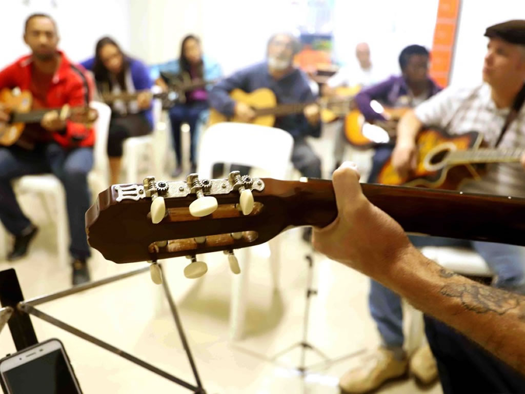 A oficina de violão é direcionada a pessoas a partir de oito anos. A oficina tem o objetivo estimular e incentivar o gosto à música, desenvolvendo a inteligência musical e a socialização por meio das aulas em grupos e conhecimentos musicais com o ensino melódico, harmônico e rítmico através do violão e com apostila de fácil entendimento.