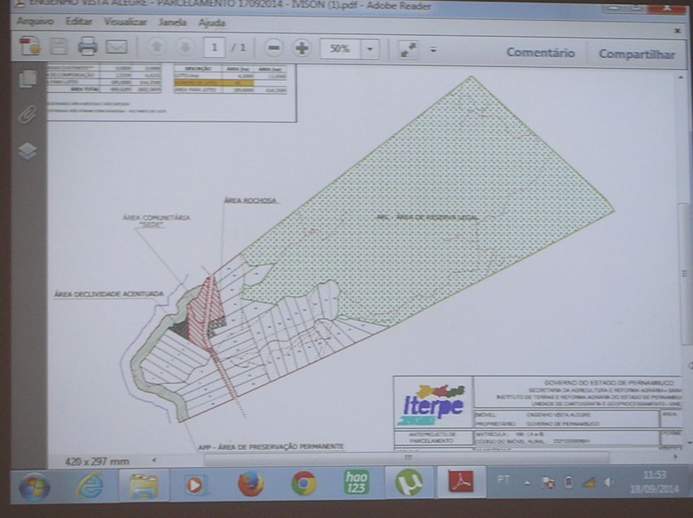 Segundo o ITERPE, foram cadastradas 208 famílias, deste número de famílias foram selecionadas 104 que estão no perfil para serem assentadas.